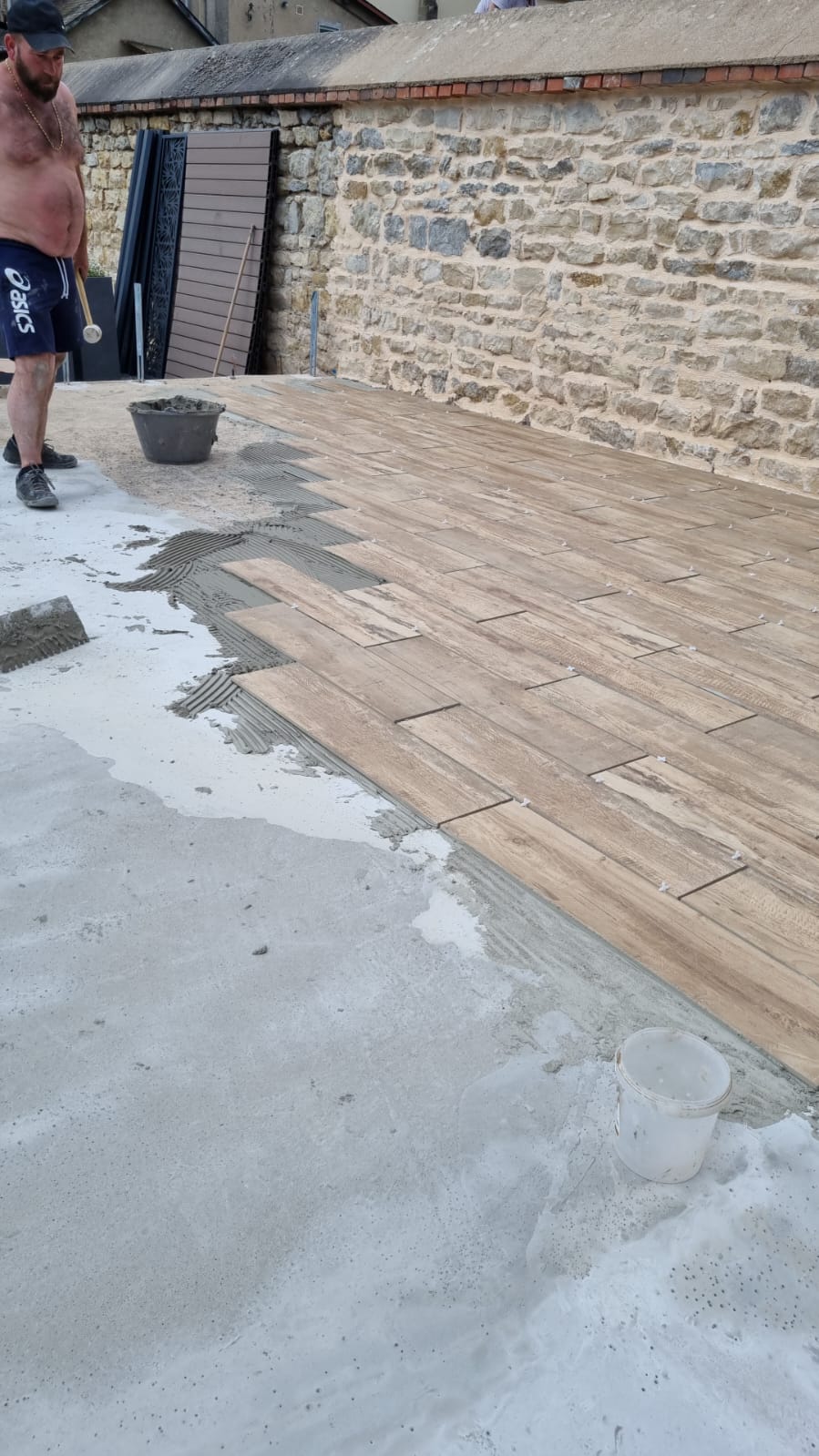 Réalisation de plusieurs terrasses pour une de nos cliente fidèle. Nous sommes intervenus par beau temps pour créer la chape de béton et ensuite poser le carrelage d’extérieur. Durée du chantier : 3 jours